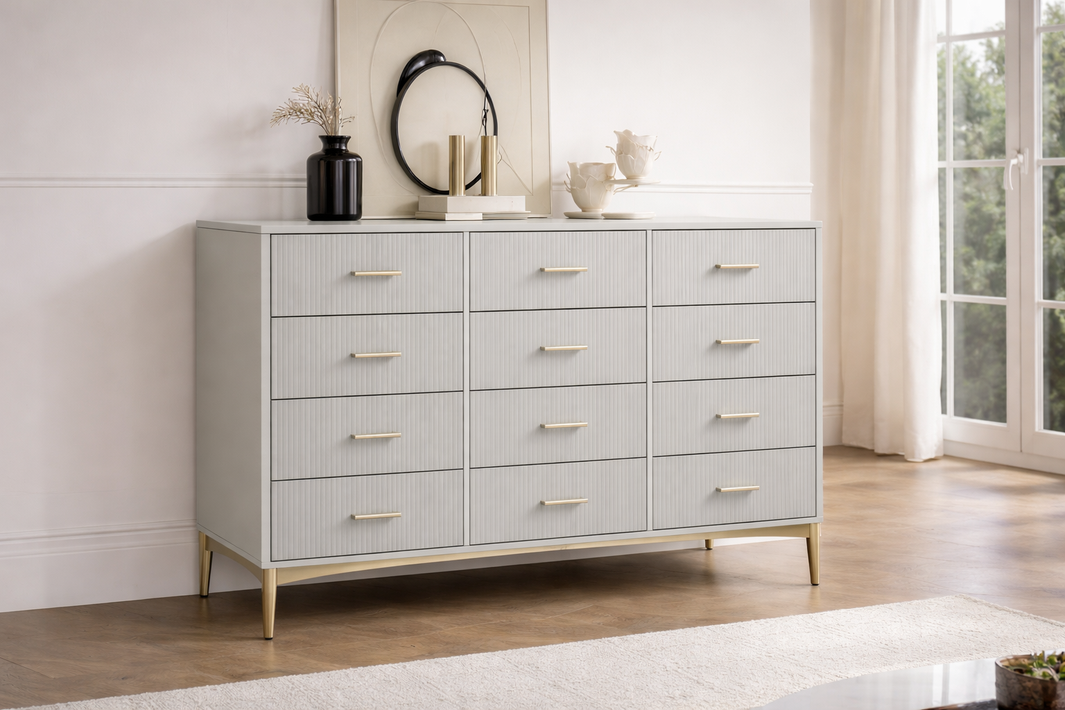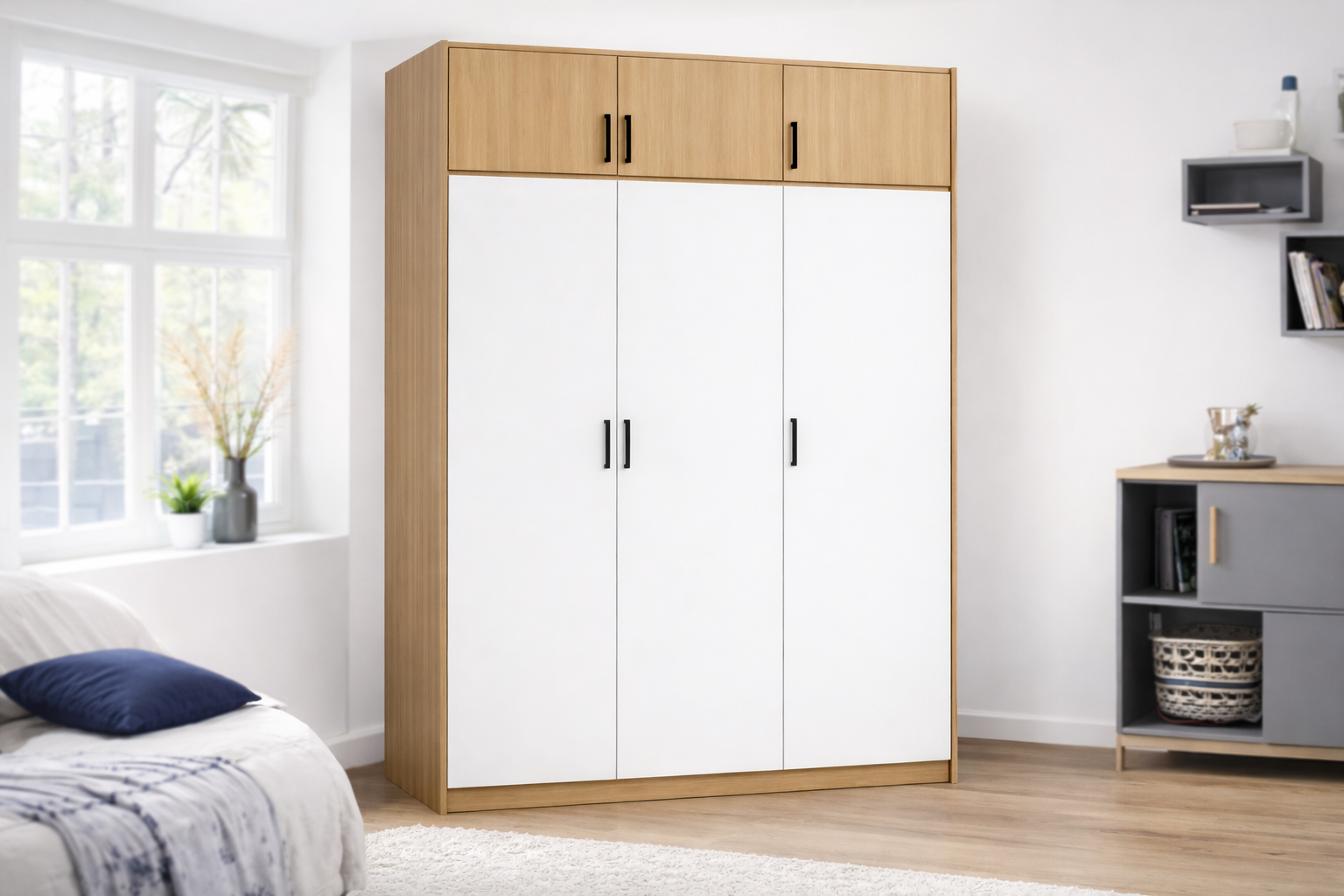 Der Nachttisch verfügt über ein kompaktes Design und bietet praktischen Stauraum neben dem Bett. Mit Schubladen und offenen Fächern eignet er sich zur Aufbewahrung von Büchern, Weckern oder anderen Alltagsgegenständen. Die stabile Konstruktion und die schlichte Optik passen zu verschiedenen Einrichtungsstilen.
