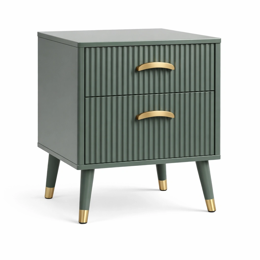 Nachttisch MDF Grün mit 2 Schubladen