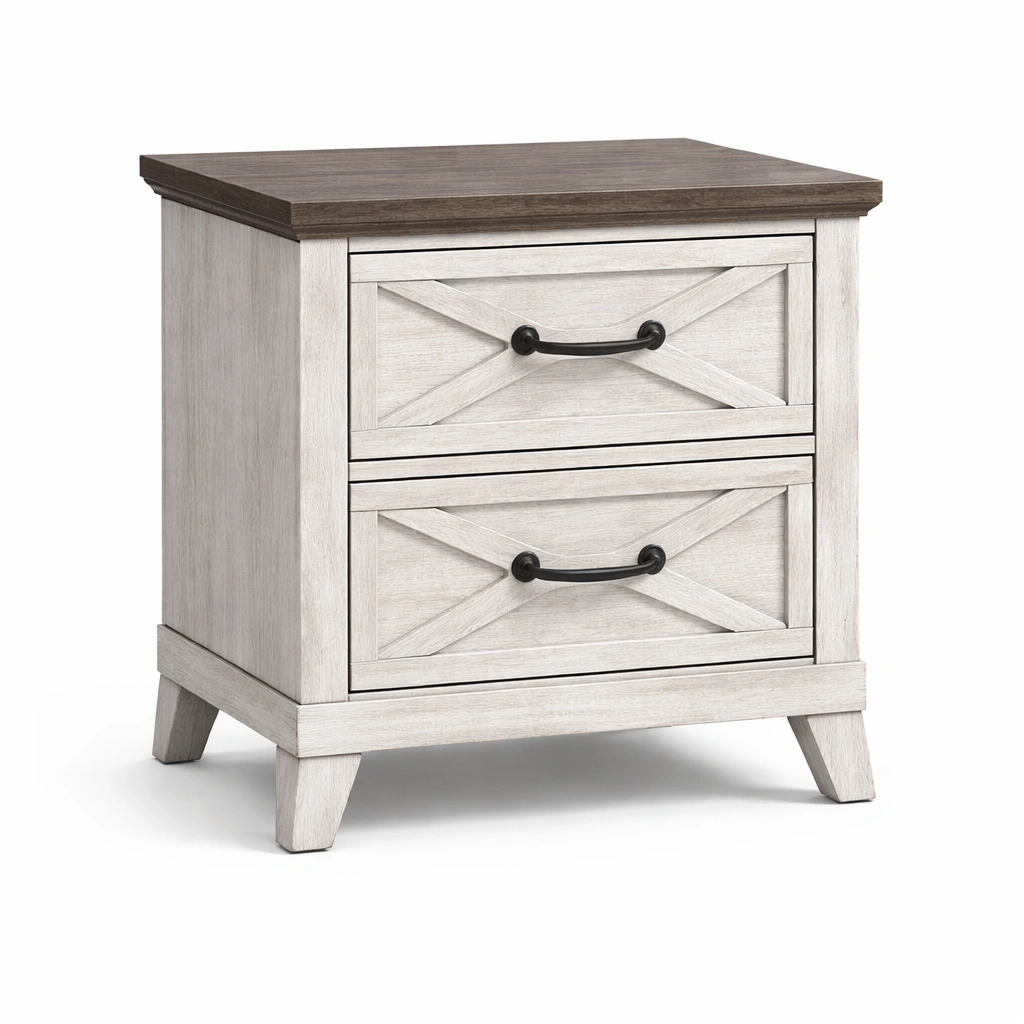 Nachttisch Holz Weiß Braun mit 2 Schubladen